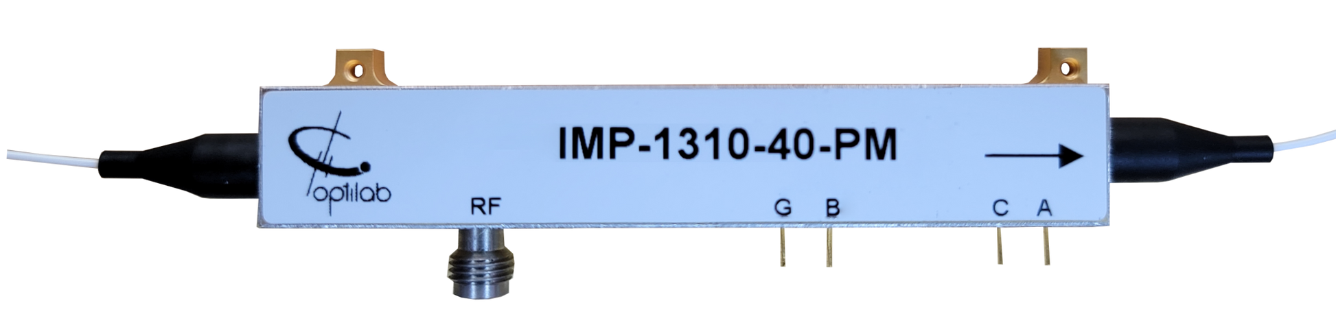 The Optilab IMP-1310-40-PM is a Intensity Modulator that is manufactured with Annealed Proton Exchange(APE) process, it features a zero-chirp design and Polarization Maintaining(PM) fiber output. IMP-1310-40-PM features 17GHz E/O bandwidth, a highly linear transfer function and excellent extinction ratio. Applications include digital transmission up to 40 Gb/s, analog RFoF transmission to 30 GHz, optical pulse generation, mode-locked fiber laser and microwave optical link. The IMP-1310-40-PM is compatible with a wide variety of modulator drivers, and a separate bias port allows the modulator to operate at specific points of the transfer function. The IMP-1310-40-PM Modulator is designed for external modulation of 1310 nm laser up to 30 GHz or 40 Gb/s. It is also applicable for pulse generation for Master Oscillator Power Amplifier(MOPA) configuration. Due to proprietary APE technology, IMP-1310-40-PM can handle input power beyond 100mW and is a bias-stabilized modulator. It has a wide operating temperature tolerance ranging from -25ºC to +70ºC. Contact Optilab for more information.