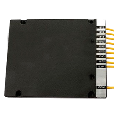 This coarse wavelength division multiplexer (CWDM Mux/Demux) utilizes thin film coating technology and proprietary design of non-flux metal bonding micro optics packaging. It provides low insertion loss, high channel isolation, wide pass band, low temperature sensitivity and epoxy free optical path.